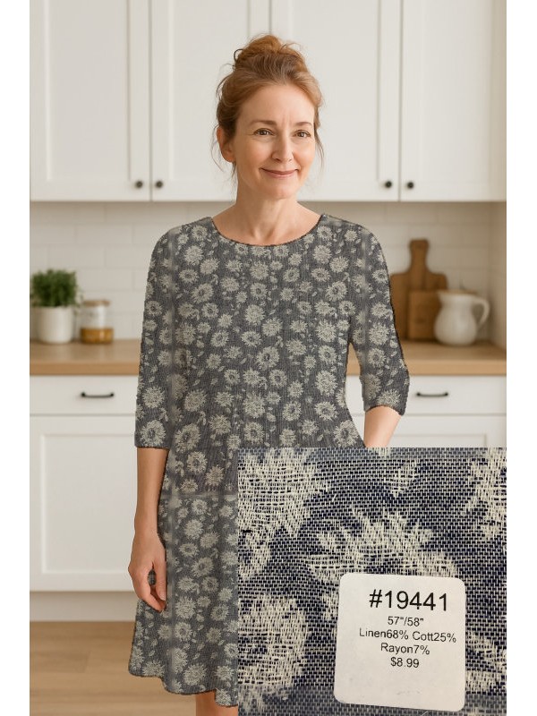 Tags: dress fabric, floral, gray, linen, linen/cotton, rayon
