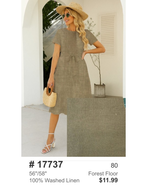 17737This fabric is a plain weave washed linen with a soft, natural texture.