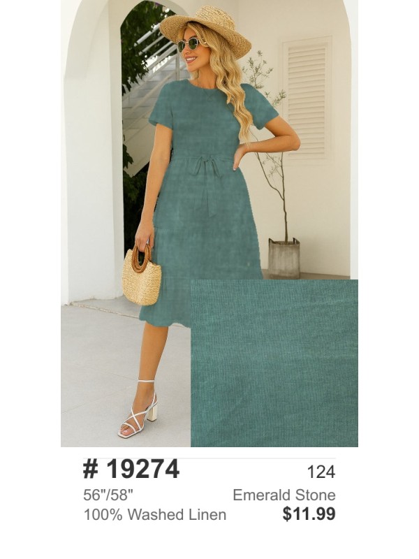 19274This fabric is a plain weave washed linen with a soft, natural texture.